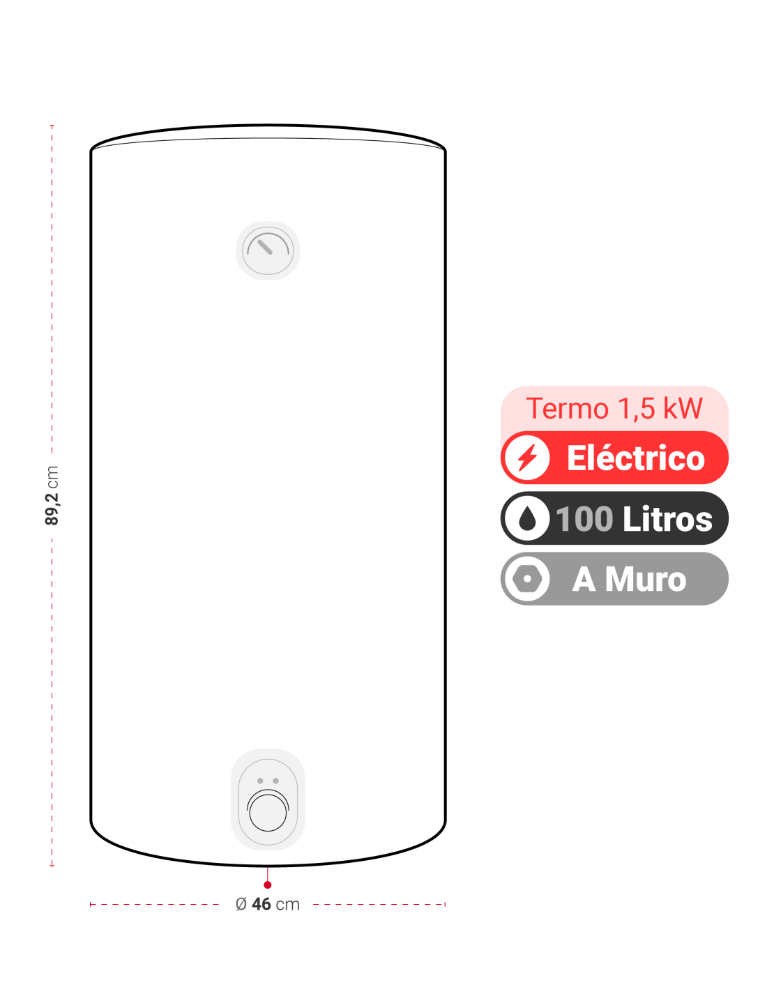 ANCHO: 46 ALTO: 89,2 FONDO: 46 Diámetro: 46