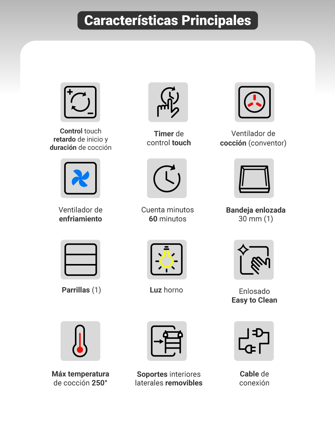 - CONTROL TOUCH DE RETARDO DE INICIO Y DURACIÓN DE COCCIÓN