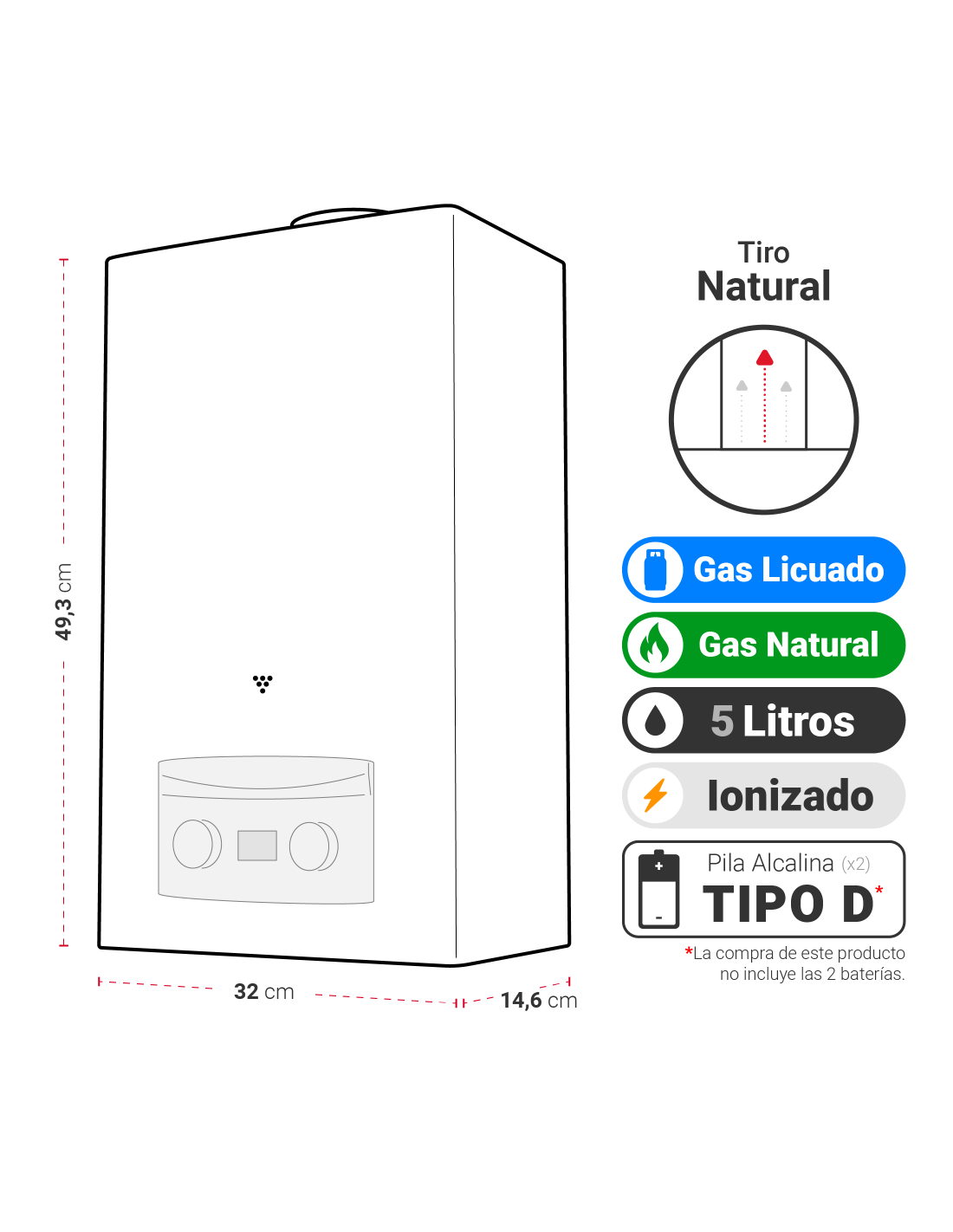 Calefón ATMD 5 Litros Tiro Natural