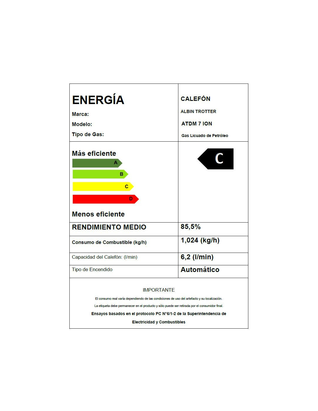 Calefón ATMD 7 Litros Tiro Natural