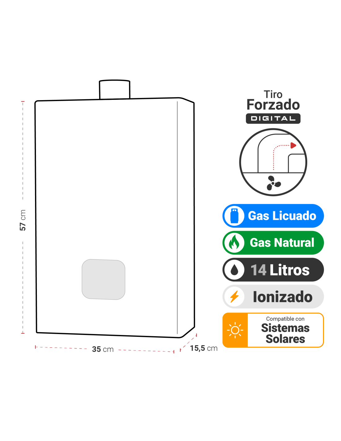 Calefón ATMD 14 Litros Tiro Forzado Digital
